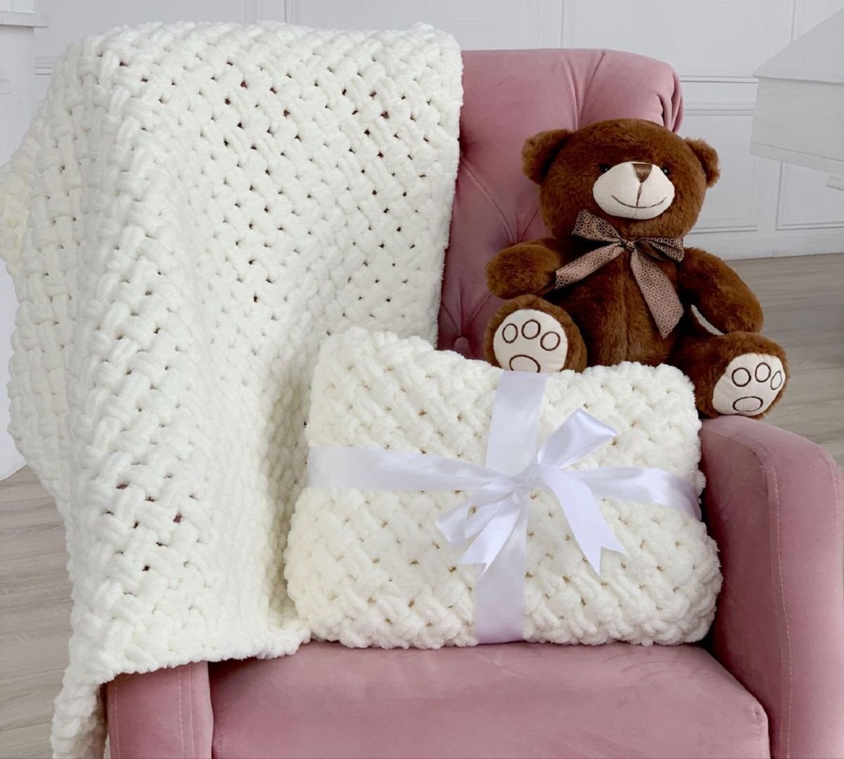 Плед крупной вязки