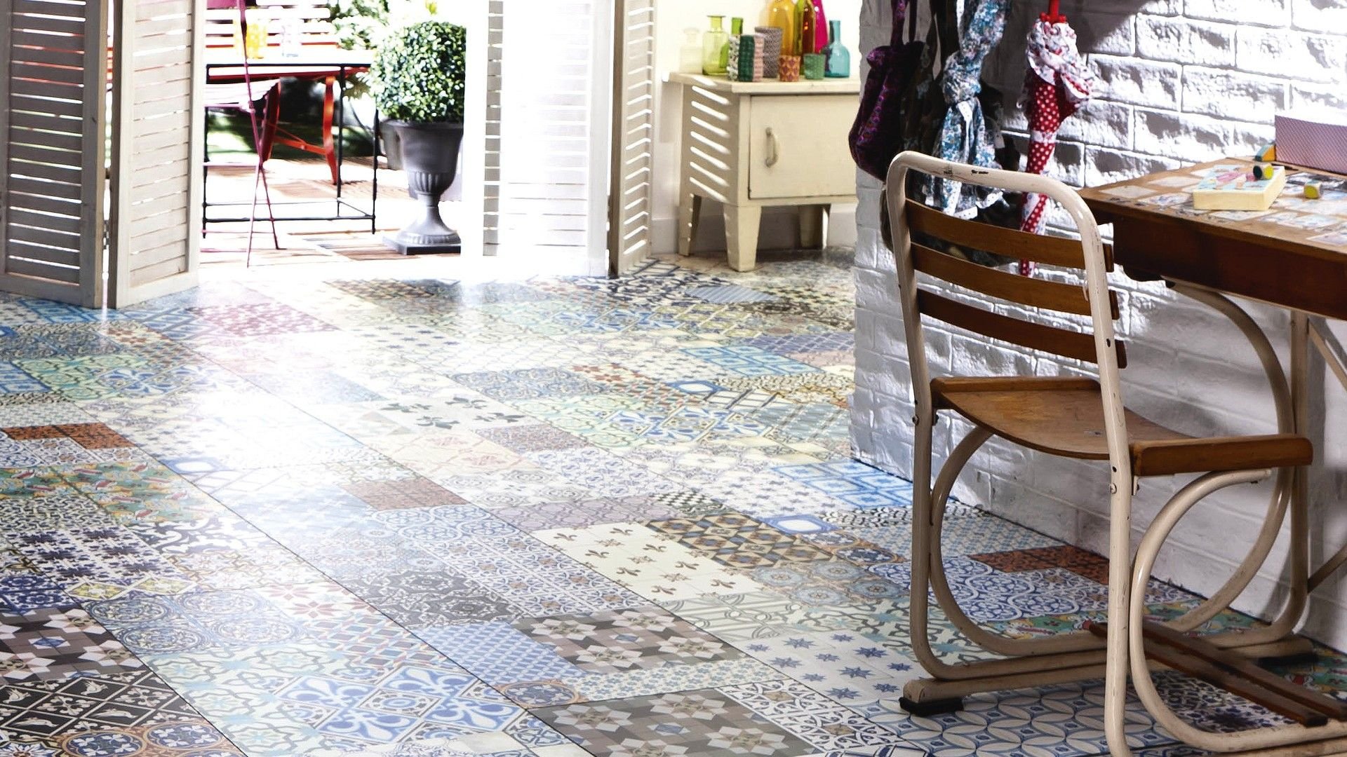 Ламинат под плитку пэчворк фото в интерьере