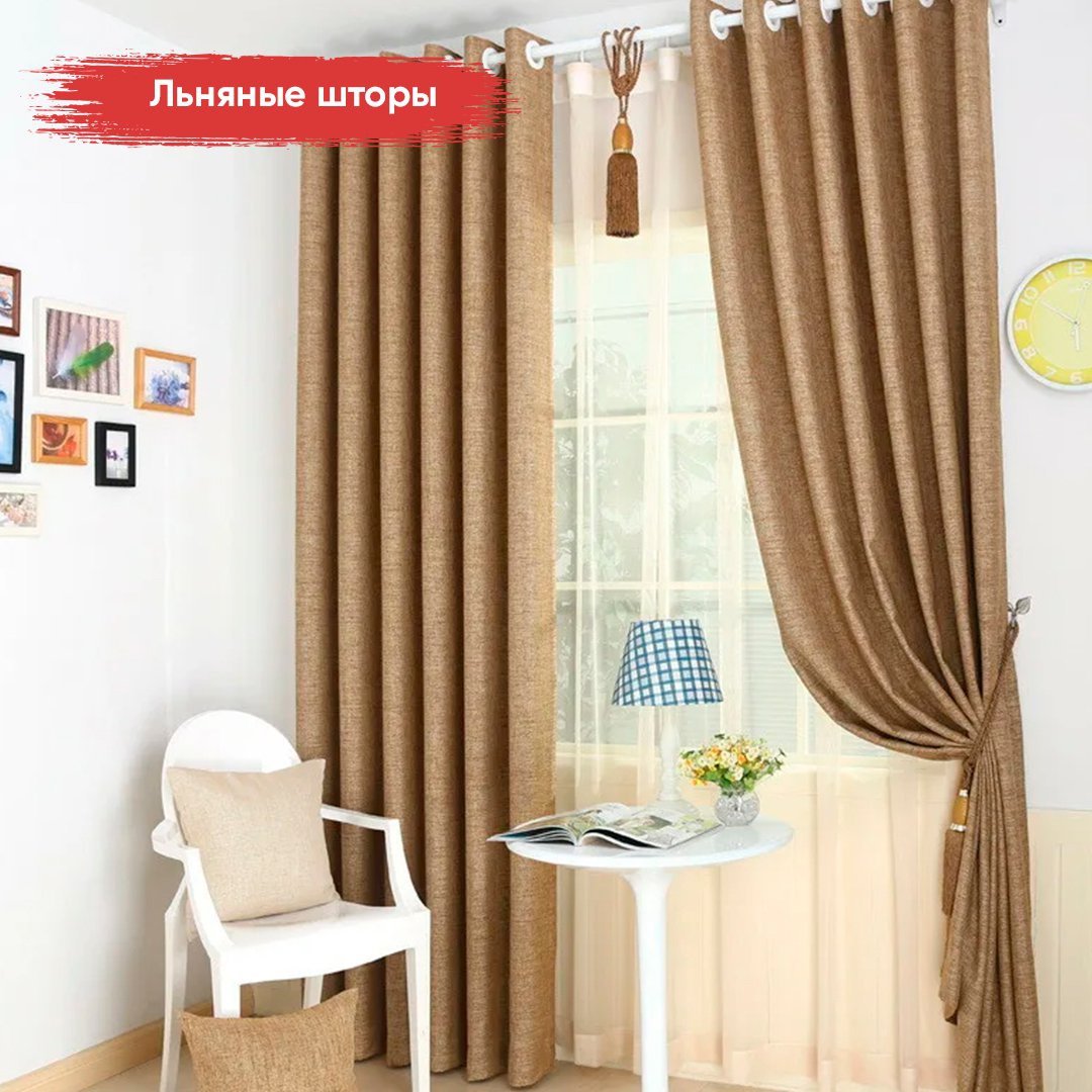 Комплект портьер блэкаут-лен b502-3, бежевый (BT-200010-gr)